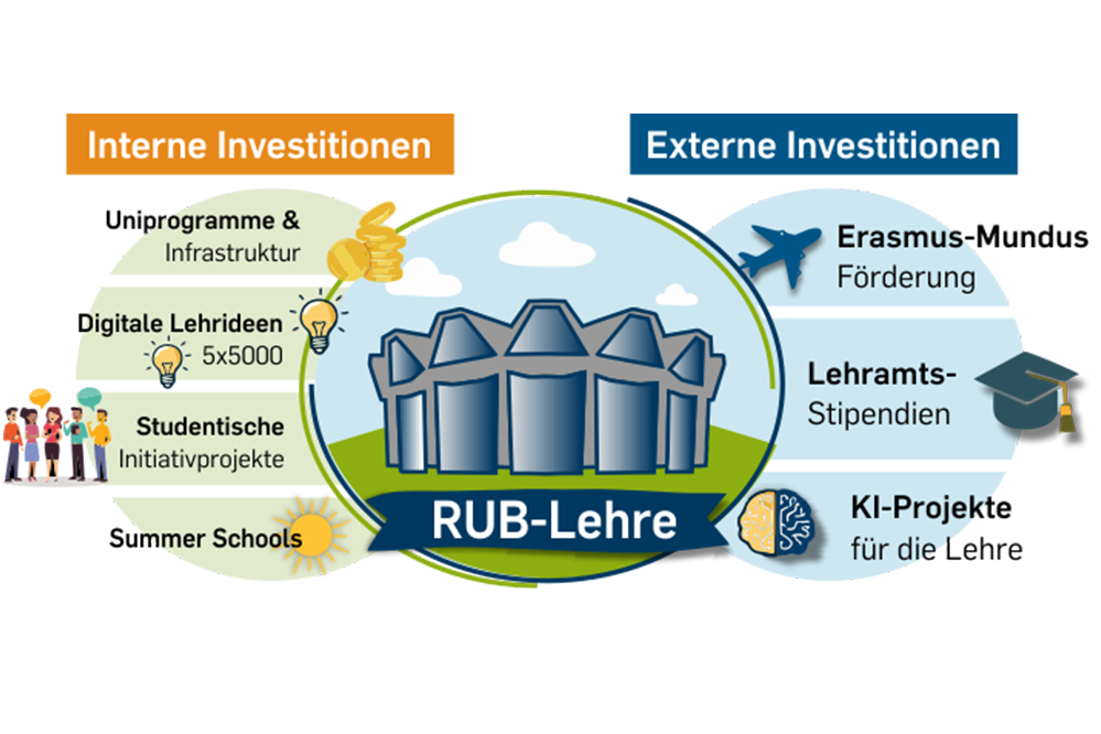 Lehre hat an der Ruhr‑Universität Bochum (RUB) eine besonders hohe Priorität. Um ihre Qualität und Innovationskraft kontinuierlich zu steigern, investiert die RUB jährlich über 1 Million Euro in interne Förderprogramme und wirbt sehr erfolgreich zusätzlich in großem Umfang externe Mittel ein.
